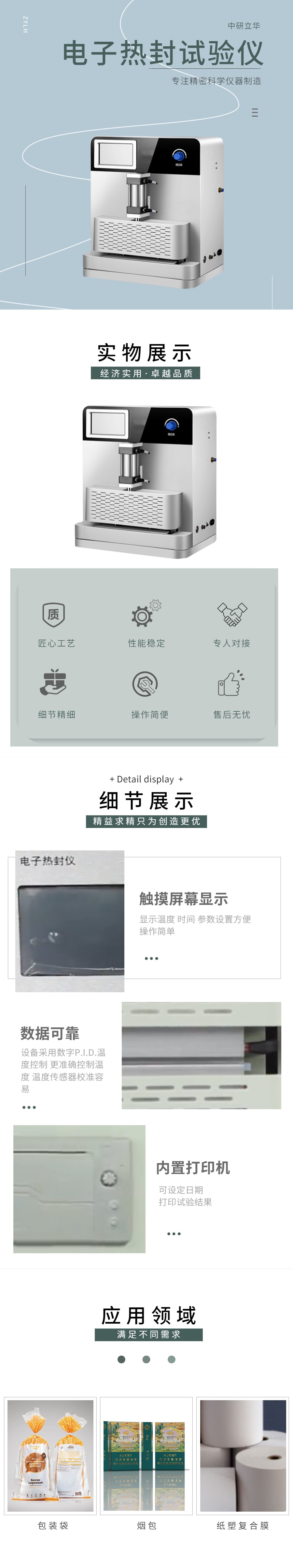 用途:測定塑料薄膜基材、軟包裝復合膜、涂布紙、鋁箔及其它熱封復合的適宜熱封溫度范圍,熱封裝速度,熱封壓力等。適用于各塑料薄膜、食品、藥品生產企業對產品質量的控制和檢測機構、學校
